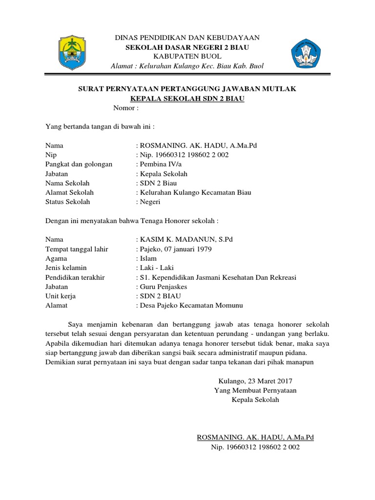 0185.a/h.06/sma.01.04/mn/2010yang bertanda tangan di bawah ini:n a m a: Terimakasih telah berkunjung di gawe cv pada post contoh surat pernyataan kepala sekolah. Contoh surat pernyataan, panduan lengkap penulisan, contoh surat pernyataan cpns, surat pernyataan kerja, belum nikah, download surat pernyataan adalah surat yang dibuat dengan tujuan menyatakan sekaligus menginformasikan tentang kebenaran suatu hal baik itu tentang. Demikian pernyataan ini saya buat dengan sebenarnya dan penuh rasa tanggung jawab. Kepala sekolah untuk guru contoh surat pernyataan mengajar dari kepala sekolah contoh surat pernyataan penolakan kepala sekolah.
